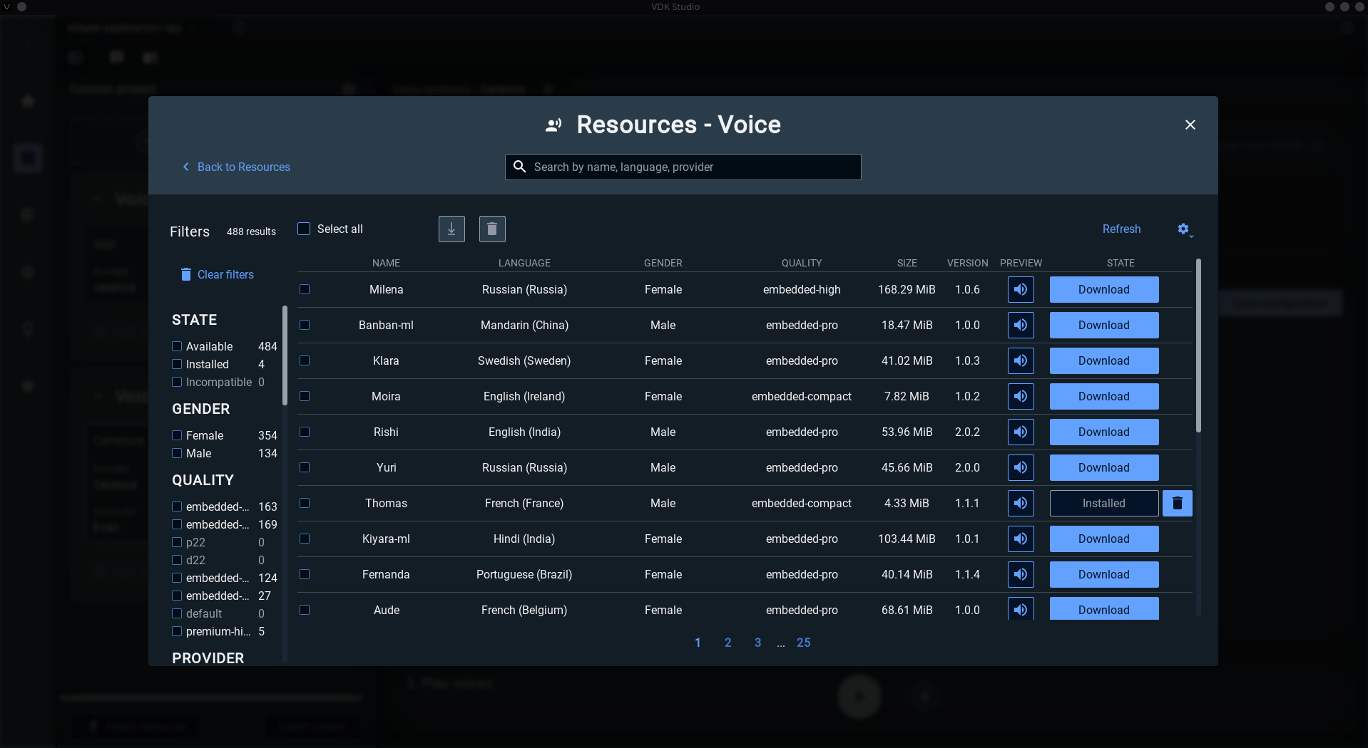 Check the voice(s) you want in the table and press the Save configuration button to apply your changes in your sample project.