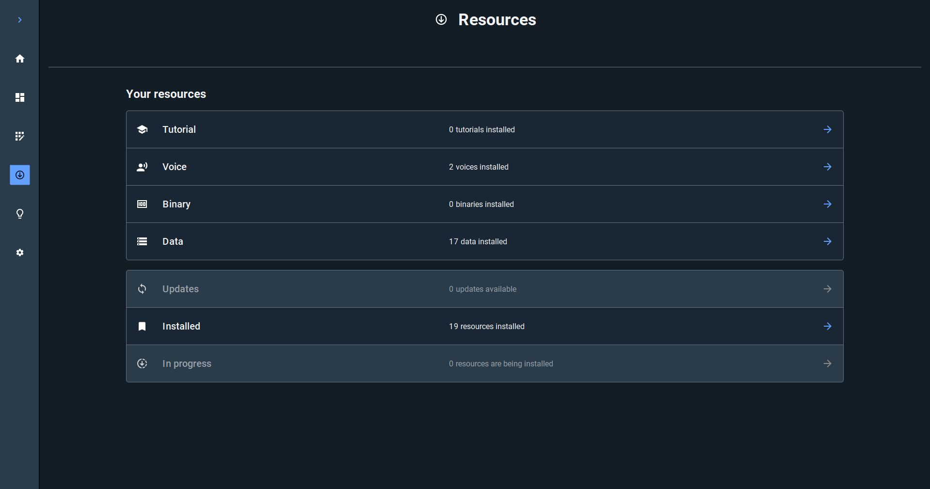 In the Resources space, you can download different data, voices and anything you need for a future use.