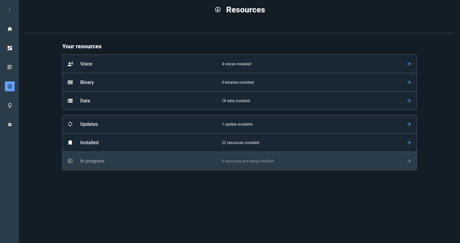 In the Resources space, you can download different data, voices, and anything you need for future use.